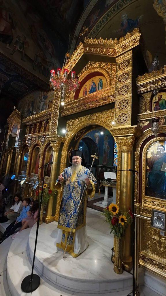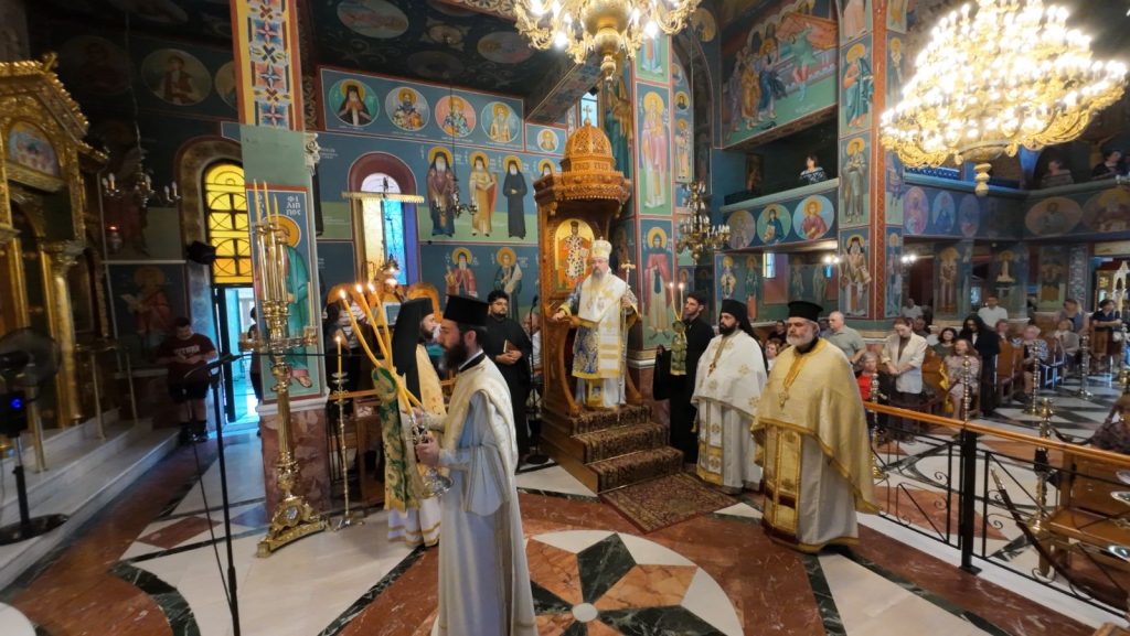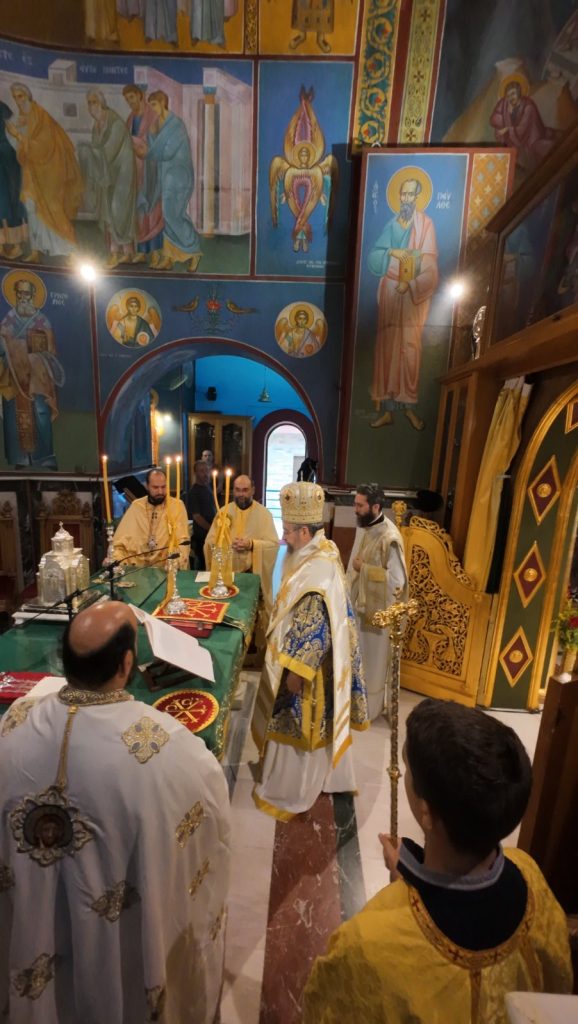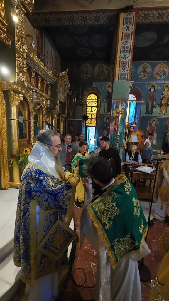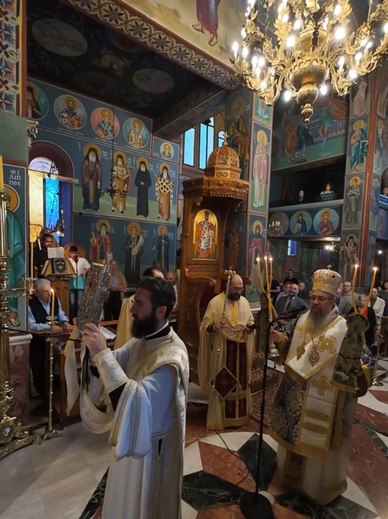 Το πρωί της Κυριακής, 13 Οκτωβρίου 2024 ο Σεβασμιώτατος Ποιμενάρχης μας κ. Θεόφιλος βρέθηκε στον κατάμεστο Ιερό Καθεδρικό Ναό Αγίας Γλυκερίας Γαλατσίου, όπου και προεξήρχε της Αναστάσιμης Αρχιερατικής Θείας Λειτουργίας, κατόπιν προσκλήσεως του Προϊστάμενου του εν λόγω Ιερού Ναού, Πανοσιολογιωτάτου Αρχιμανδρίτου π. Ιωακείμ Αϊβαλιώτη. Τον Σεβασμιώτατο Μητροπολίτη μας πλαισίωσαν επιπλέον οι εφημέριοι του Ιερού Ναού, Πανοσιολογιώτατος Αρχιμανδρίτης π. Αθηναγόρας Σουπουρτζής, ο Αιδεσιμολ. Πρωτοπρεσβύτερος π. Γεώργιος Γιαπιτζίογλου, όπως και ο κληρικός της Ιεράς Μητροπόλεως Κώου, Πανοσιολογιώτατος Αρχιμανδρίτης π. Διονύσιος Παριάρος και ο Αρχιδιάκονος της Ιεράς Μητροπόλεως Περιστερίου, π. Δαυίδ Καψάλης.