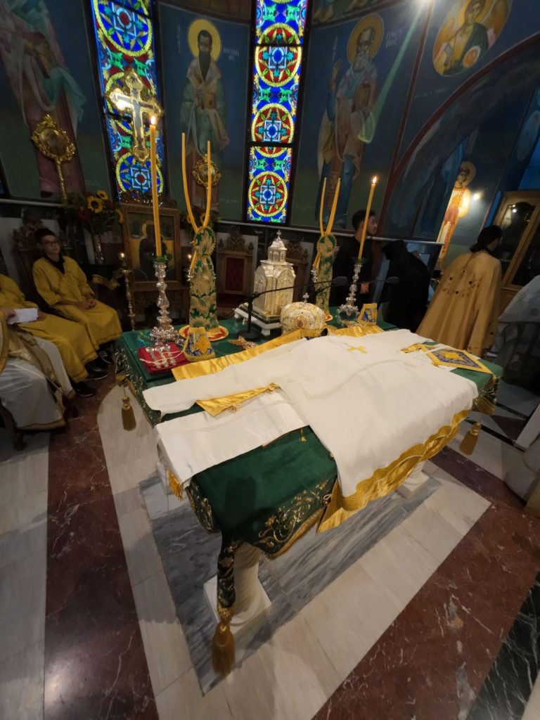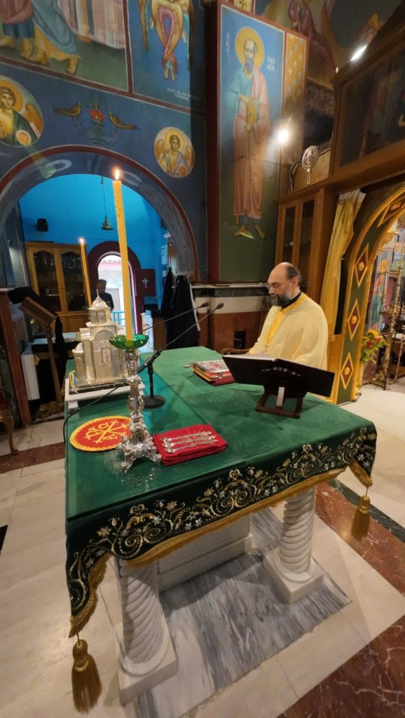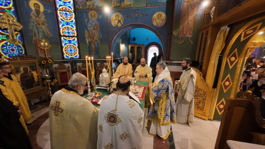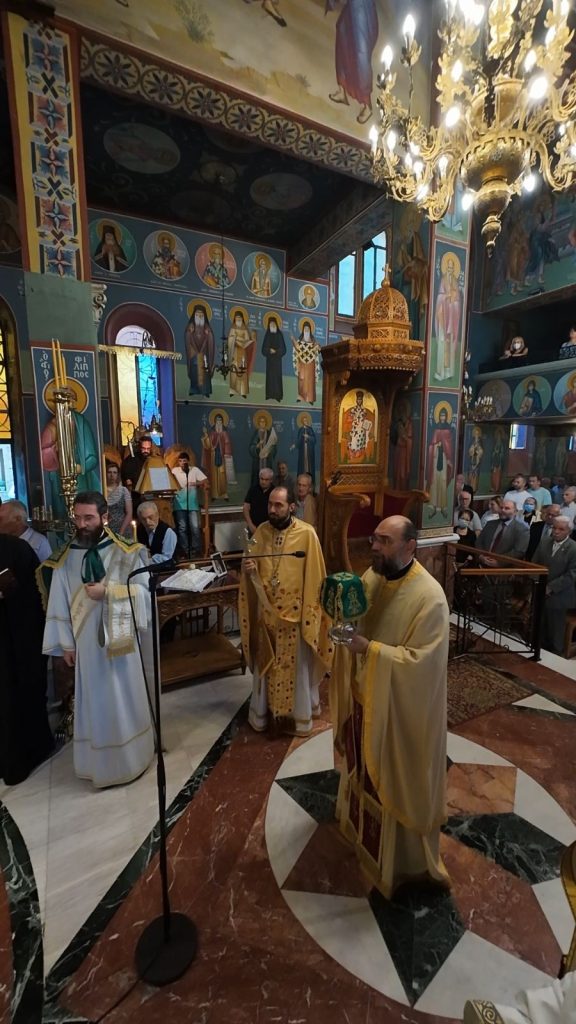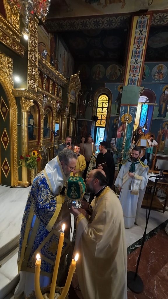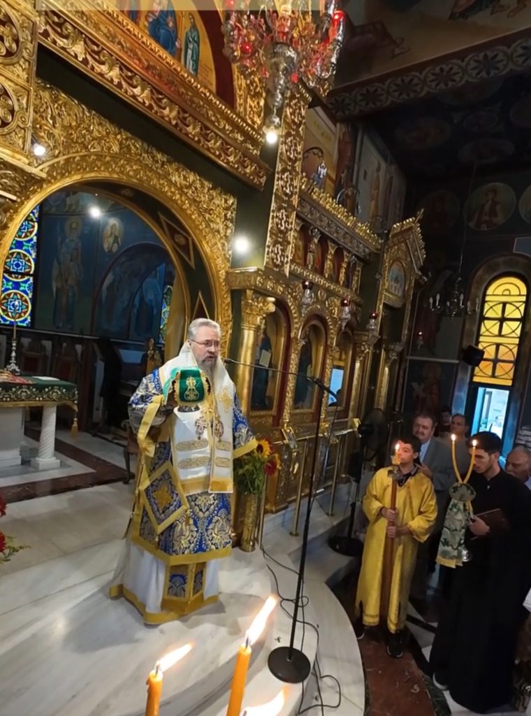 Το πρωί της Κυριακής, 13 Οκτωβρίου 2024 ο Σεβασμιώτατος Ποιμενάρχης μας κ. Θεόφιλος βρέθηκε στον κατάμεστο Ιερό Καθεδρικό Ναό Αγίας Γλυκερίας Γαλατσίου, όπου και προεξήρχε της Αναστάσιμης Αρχιερατικής Θείας Λειτουργίας, κατόπιν προσκλήσεως του Προϊστάμενου του εν λόγω Ιερού Ναού, Πανοσιολογιωτάτου Αρχιμανδρίτου π. Ιωακείμ Αϊβαλιώτη. Τον Σεβασμιώτατο Μητροπολίτη μας πλαισίωσαν επιπλέον οι εφημέριοι του Ιερού Ναού, Πανοσιολογιώτατος Αρχιμανδρίτης π. Αθηναγόρας Σουπουρτζής, ο Αιδεσιμολ. Πρωτοπρεσβύτερος π. Γεώργιος Γιαπιτζίογλου, όπως και ο κληρικός της Ιεράς Μητροπόλεως Κώου, Πανοσιολογιώτατος Αρχιμανδρίτης π. Διονύσιος Παριάρος και ο Αρχιδιάκονος της Ιεράς Μητροπόλεως Περιστερίου, π. Δαυίδ Καψάλης.