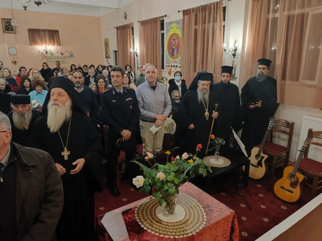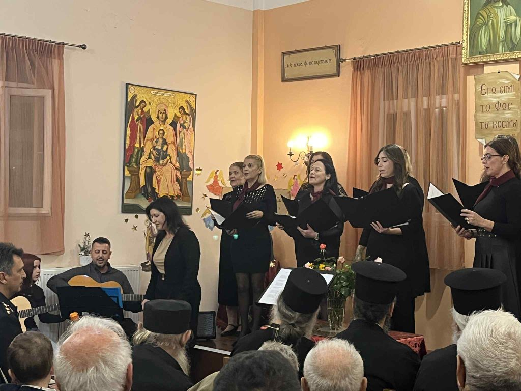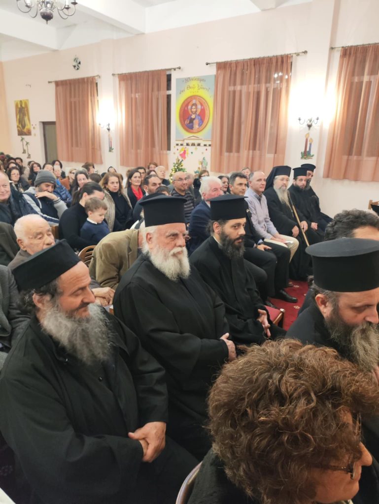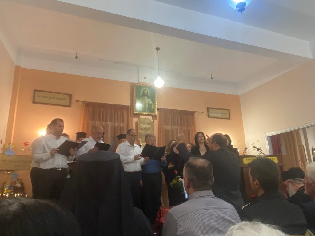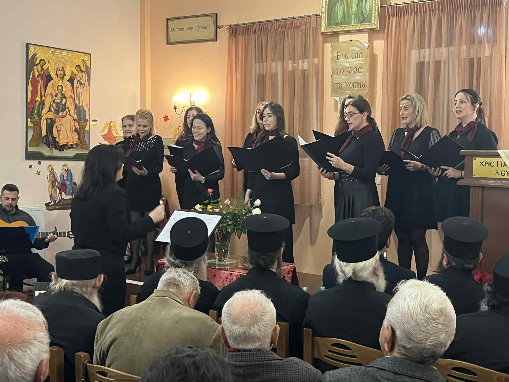 Της ομιλίας προηγήθηκε απόδοση ύμνων της εορτής των Χριστουγέννων από χορό σπουδαστών και αποφοίτων της Σχολής Βυζαντινής Μουσικής της Ιεράς Μητροπόλεως. Η εκδήλωση ολοκληρώθηκε με κάλαντα απο όλη την Ελλαδα, που απέδωσε το τμήμα παραδοσιακού τραγουδιού της Σχολης γεμίζοντας μελωδίες την κατάμεστη αίθουσα. Την χορωδία συνόδεψαν ο κ. Κώστας Κόγκας (κιθάρα-φωνητικά) και η κα Ευαγγελία Καββαδά (κιθάρα).