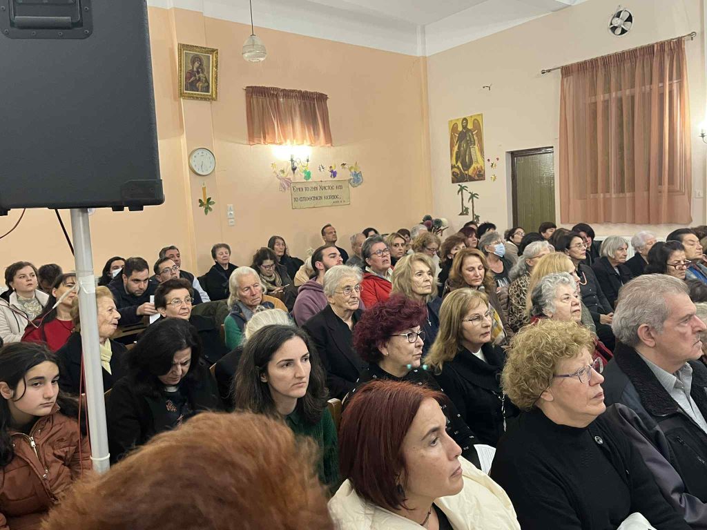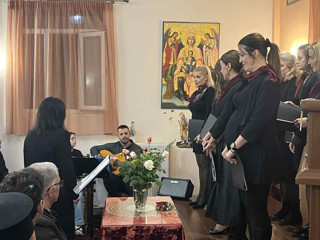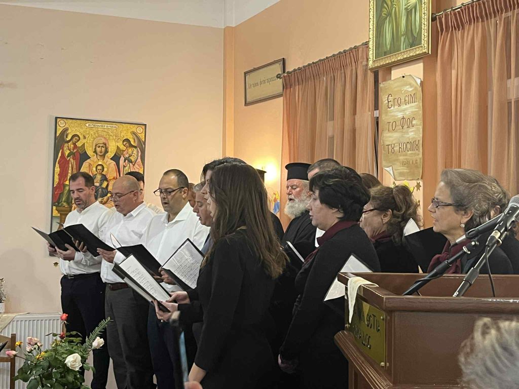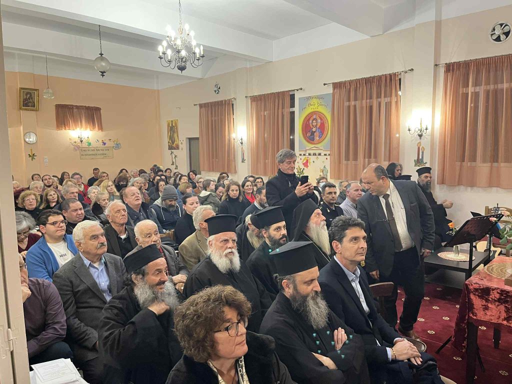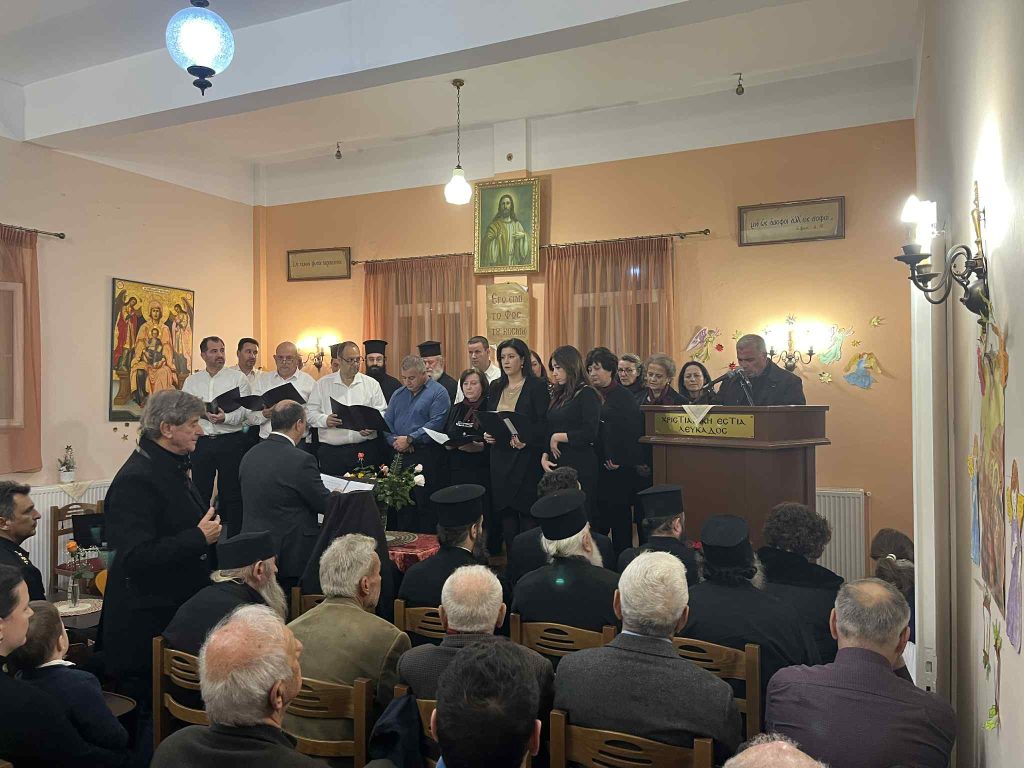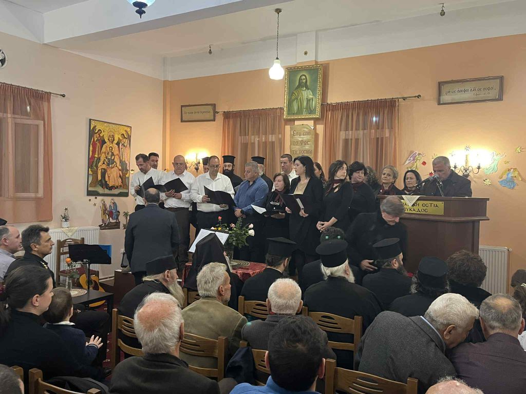 Της ομιλίας προηγήθηκε απόδοση ύμνων της εορτής των Χριστουγέννων από χορό σπουδαστών και αποφοίτων της Σχολής Βυζαντινής Μουσικής της Ιεράς Μητροπόλεως. Η εκδήλωση ολοκληρώθηκε με κάλαντα απο όλη την Ελλαδα, που απέδωσε το τμήμα παραδοσιακού τραγουδιού της Σχολης γεμίζοντας μελωδίες την κατάμεστη αίθουσα. Την χορωδία συνόδεψαν ο κ. Κώστας Κόγκας (κιθάρα-φωνητικά) και η κα Ευαγγελία Καββαδά (κιθάρα).