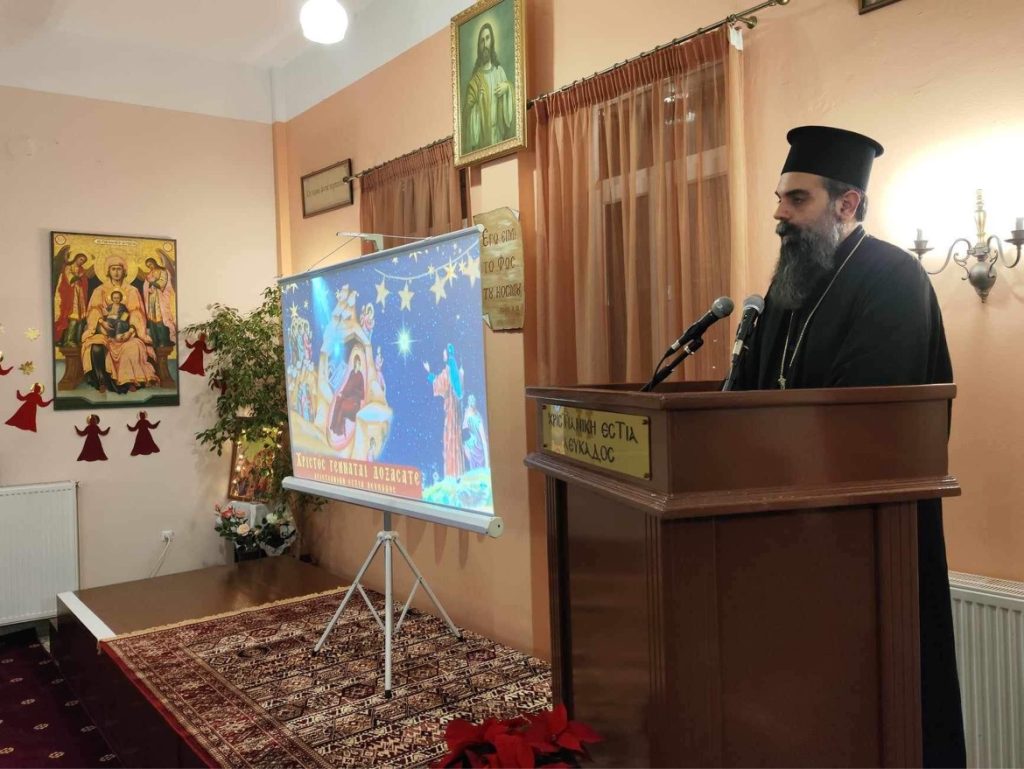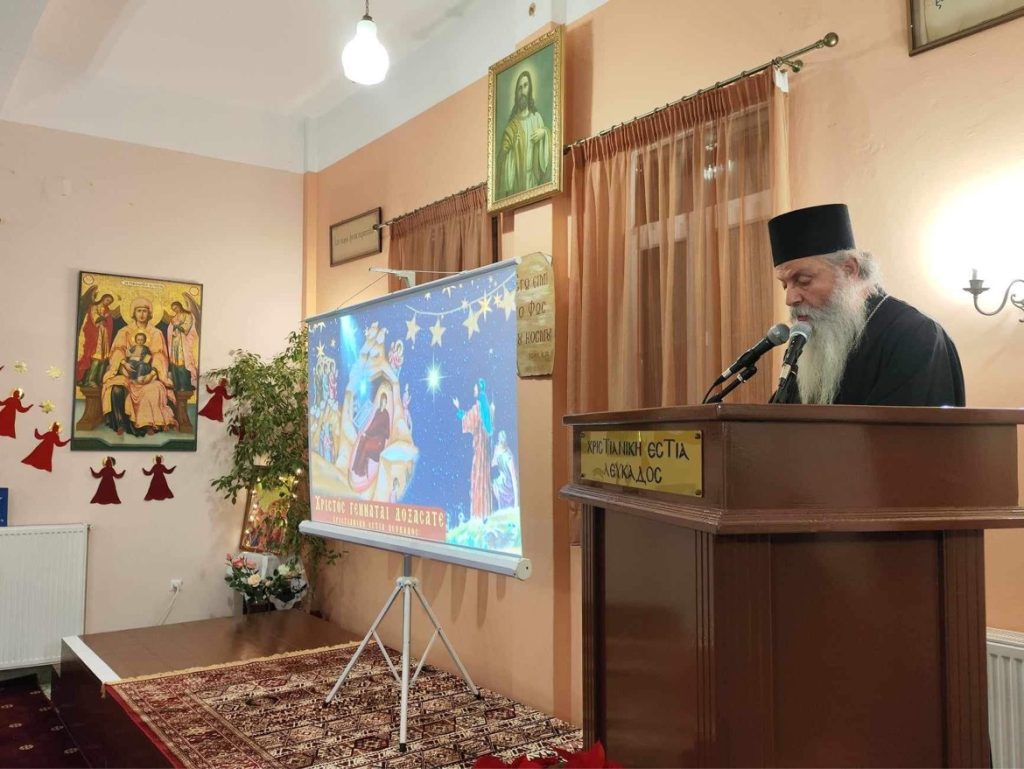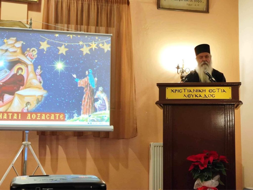Πραγματοποιήθηκε, με την ευλογία του Σεβασμιωτάτου Ποιμενάρχου μας κ. Θεοφίλου, το απόγευμα της Κυριακής, 17 Νοεμβρίου 2023 και ώρα 6.00 μ.μ. η Χριστουγεννιάτικη εορτή της Ενώσεως Γονέων Χριστιανικής Αγωγής στην αίθουσα της ΓΕΧΑ Λευκάδος (όπισθεν του Ι. Ναού Παντοκράτορος) με ομιλητή τον Καθηγούμενο της Ιεράς Μονής Υπεραγίας Θεοτόκου Φανερωμένης Λευκάδος Πανοσιολογιώτατο Αρχιμανδρίτη π. Νικηφόρο Ασπρογέρακα και θέμα: ¨«Ἐτέχθη ὑμῖν σήμερον Σωτήρ» (Λουκ.Β ́ 11).¨. Την εορτή πλαισίωσαν φωτεινές διαφάνειες και βυζαντινοί ύμνοι καθώς και Χριστουγεννιάτικα ποιήματα.