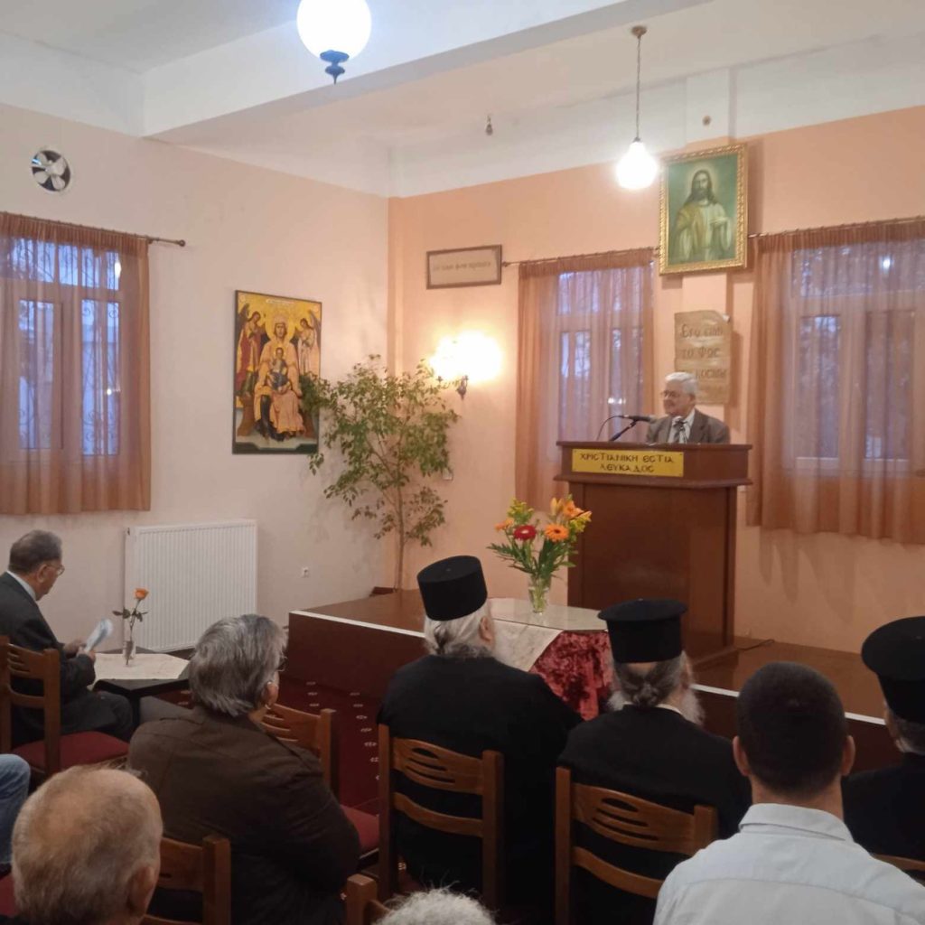 Πραγματοποιήθηκε το απόγευμα της Κυριακής, 10 Μαρτίου 2024 και ώρα 6.00 μ.μ., παρουσία του Σεβασμιωτάτου Ποιμενάρχου μας κ. Θεοφίλου, κληρικών και λαϊκών της Ιεράς μας Μητροπόλεως, στην αίθουσα του Τμήματος της Ένωσης Γονέων «Χριστιανική Αγωγή» (ΓΕΧΑ) Λευκάδος (όπισθεν Ι. Ναού Παντοκράτωρος) η τρίτη ομιλία για το τρέχον έτος με ομιλητή τον ελλογιμώτατο κ. Ηλία Σκόνδρα, Φιλόλογο – Λυκειάρχη. και θέμα «Η οδύσσεια της ζωής μας».