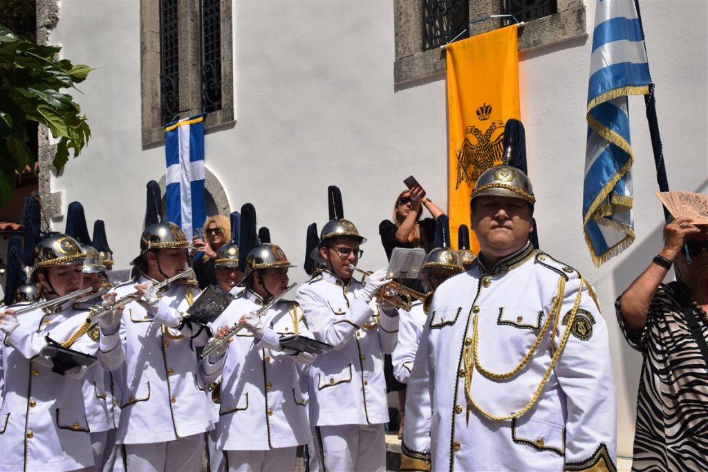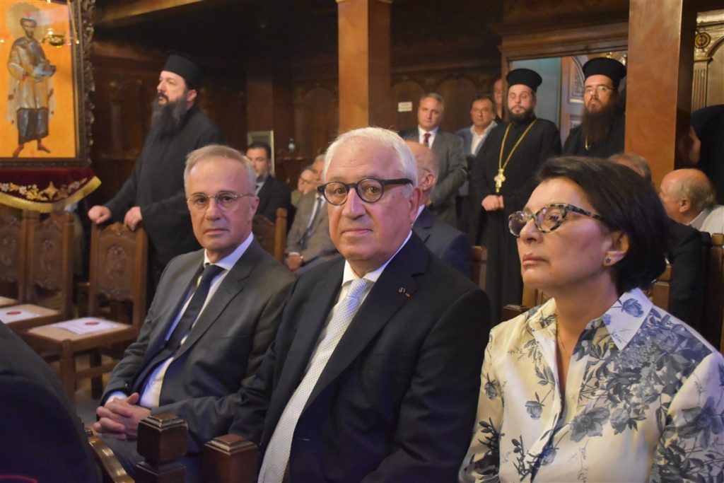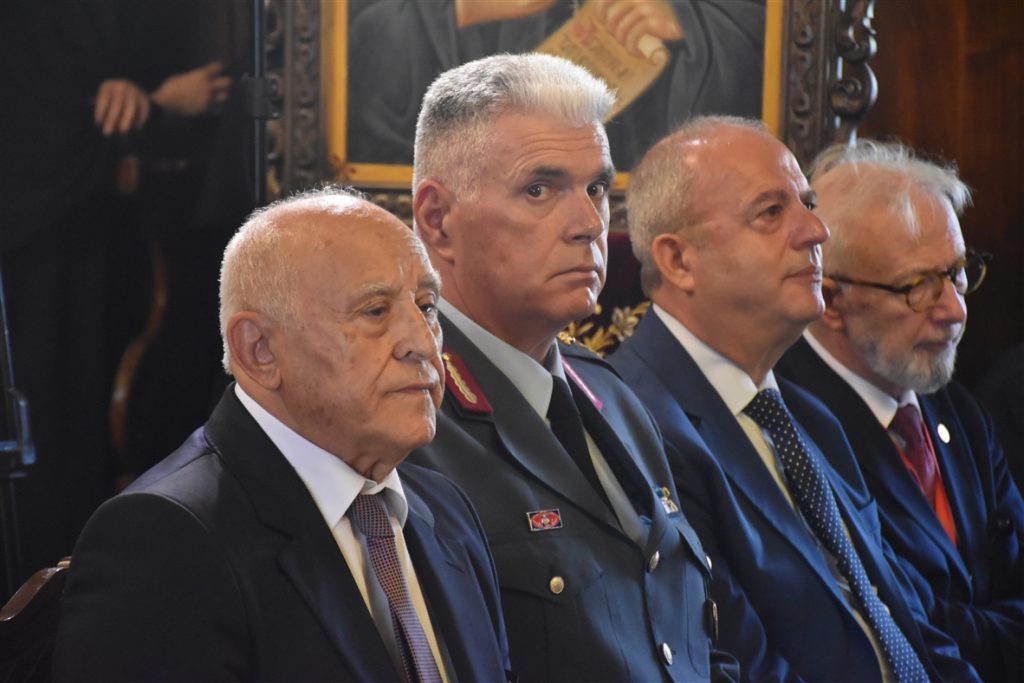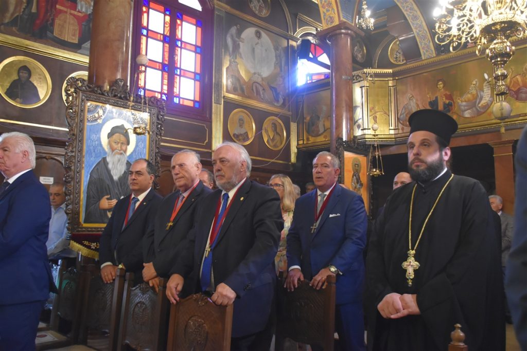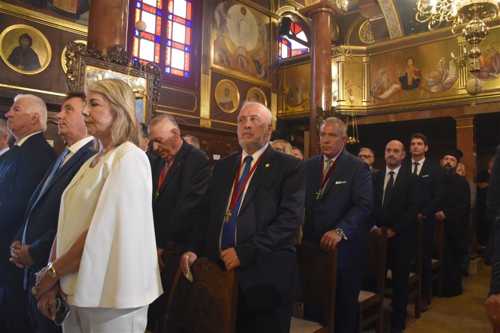 Την συνοδεία του Παναγιωτάτου απάρτιζαν: ο Σεβασμιώτατος Μητροπολίτης Γέρων Δέρκων  κ.κ. Απόστολος, ο Σεβασμιώτατος Μητροπολίτης Προικοννήσου κ.κ. Ιωσήφ, ο Σεβασμιώτατος Μητροπολίτης Μαρωνείας καί Κομοτηνής κ.κ. Παντελεήμων, ο Λευκάδιος στην καταγωγή Πανοσιολογιώτατος Ἀρχιμανδρίτης π. Βοσπόριος Μαγκαφάς, Αρχιγραμματέας της Αγίας και Ιεράς Συνόδου του Οικουμενικού Πατριαρχείου, ὁ Πανοσιολογιώτατος Ἀρχιμανδρίτης π. Αέτιος, Μέγας Εκκλησιάρχης και Διευθυντής του Ιδιαιτέρου Πατριαρχικού Γραφείου, ο Δευτερεύων των Πατριαρχικών Διακόνων π. Καλλίνικος και ο Πατριαρχικός Διάκονος π. Ευλόγιος και μέλη της Πατριαρχικής Αυλής. Παρόν μεταξύ άλλων και ο φιλοξενούμενος της Ιεράς μας Μητροπόλεως, ο Κοσμήτωρ της Θεολογικής Σχολής του Εθνικού και Καποδιστριακού Πανεπιστημίου Αθηνών (Ε.Κ.Π.Α.) και Καθηγητής του Τμήματος Κοινωνικής Θεολογίας & Θρησκειολογίας του Ε.Κ.Π.Α. κ. Εμμανουήλ Καραγεωργούδης.