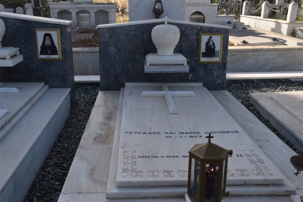 Το απόγευμα της Δευτέρας 24ης Ιουνίου, κατόπιν προσωπικής επιθυμίας Του, ο Παναγιώτατος μετέβη στο Κοιμητήριο της πόλεώς μας, όπου τέλεσε Τρισάγιο επί των τάφων των μακαριστών Μητροπολιτών Λευκάδος και Ιθάκης Δωροθέου και Νικηφόρου.