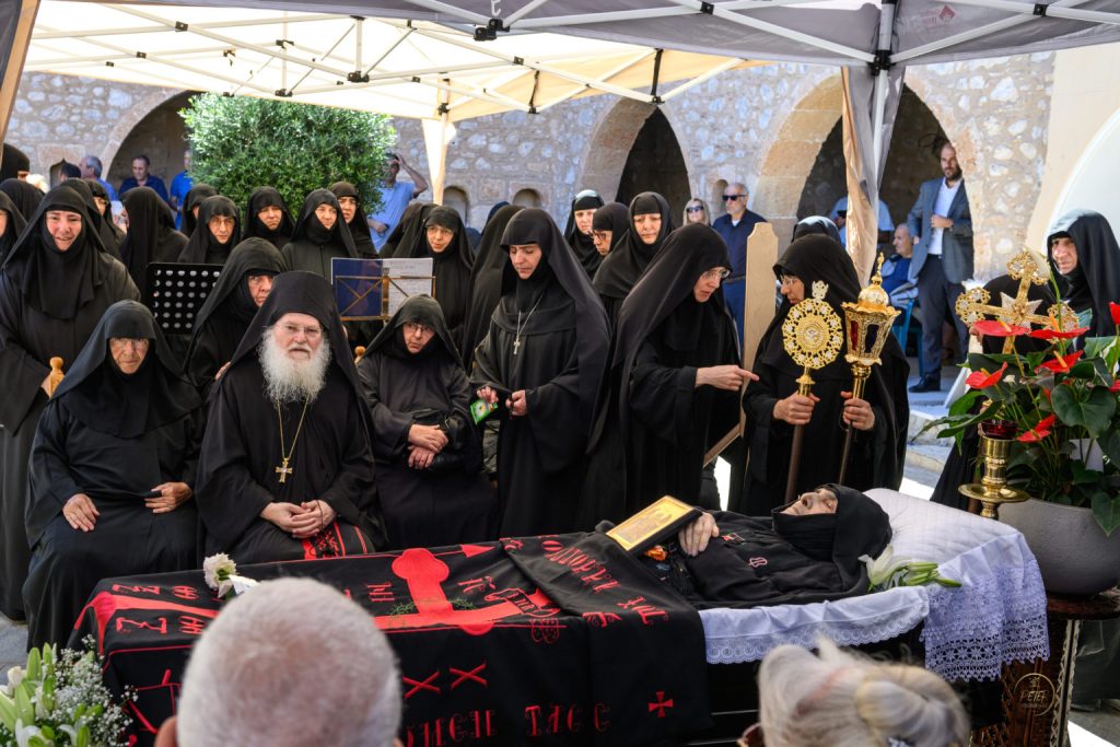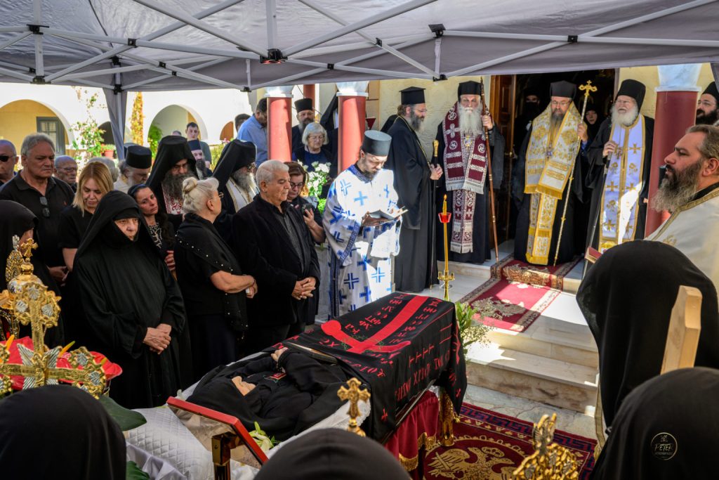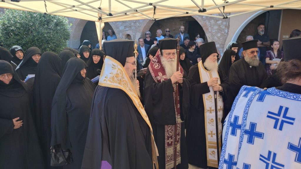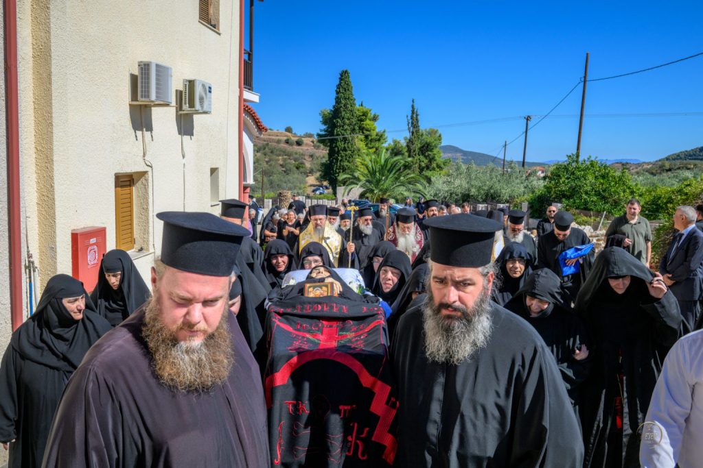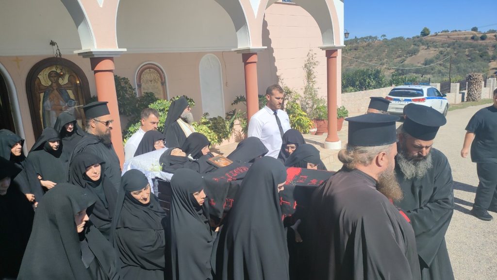 Το μεσημέρι της Τρίτης, 8 Οκτωβρίου 2024, τελέστηκε η Εξόδιος Ακολουθία της μακαριστής Ηγουμένης της Ιεράς Μονής Παμμεγίστων Ταξιαρχών Νέας Επιδαύρου, μοναχής Μακαρίας, με βαθιά συγκίνηση και παρουσία πλήθους πιστών και μοναχών.