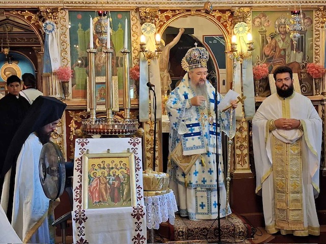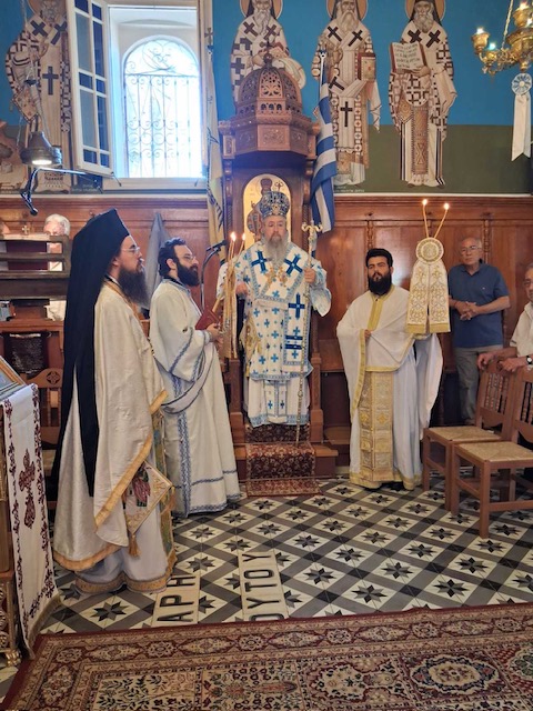 Με εκκλησιαστική λαμπρότητα εορτάσθηκε και φέτος η μνήμη των Πανευφήμων και Πρωτοκορυφαίων Αποστόλων Πέτρου και Παύλου στην ομώνυμη Ενορία στο Κατωμέρι Μεγανησίου το διήμερο του Σαββάτου, 28 και Κυριακής, 29 Ιουνίου 2025. Το πρωί της Κυριακής, ο Σεβασμιώτατος Ποιμενάρχης μας κ. Θεόφιλος μετέβει στο Μεγανήσι όπου και προεξήρχε της Πανηγυρικής Αρχιερατικής Θείας Λειτουργίας μετ᾽ αρτοκλασίας, συνοδευόμενος από τον Ηγούμενο της Ιεράς Μονής Γενεσίου Τιμίου Προδρόμου Καρυάς Λευκάδος, Πανοσιολογιώτατο Αρχιμανδρίτη π. Χριστοφόρο Αραβανή, ο οποίος και κήρυξε τον θείο λόγο και τον ευλαβέστατο διάκονο π. Σεραφείμ Περγάρη. Πριν το πέρας της Πανηγυρικής Αρχιερατικής Θείας Λειτουργίας ο Σεβασμιώτατος Μητροπολίτης μας ευχαρίστησε μεταξύ άλλων τον εφημέριο, Αιδεσιμολογιώτατο Πρεσβύτερο π. Ευάγγελο Αρώνη κι ευχήθηκε τα δέοντα τόσο στον κλήρο όσο και τις πολιτικές αρχές της νήσου και το ευσεβές εκκλησίασμα, δια πρεσβειών των εορταζόμενων Αγίων Αποστόλων της Εκκλησίας μας.