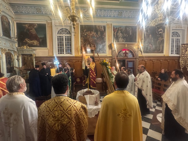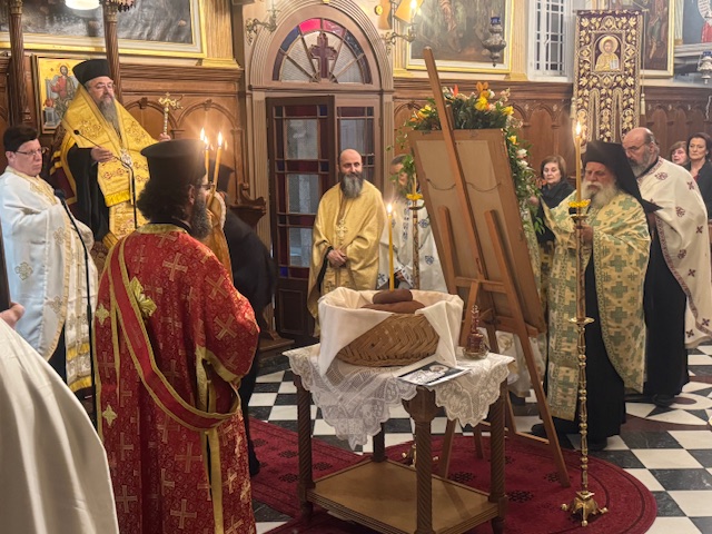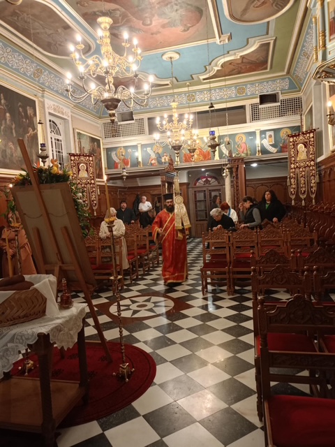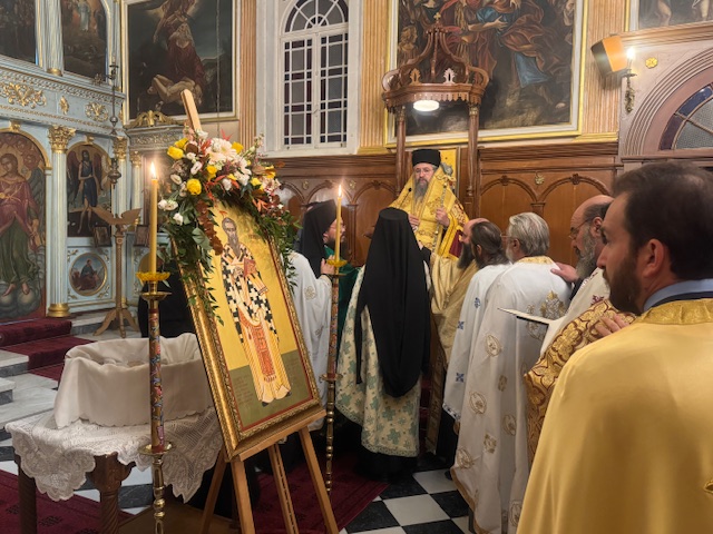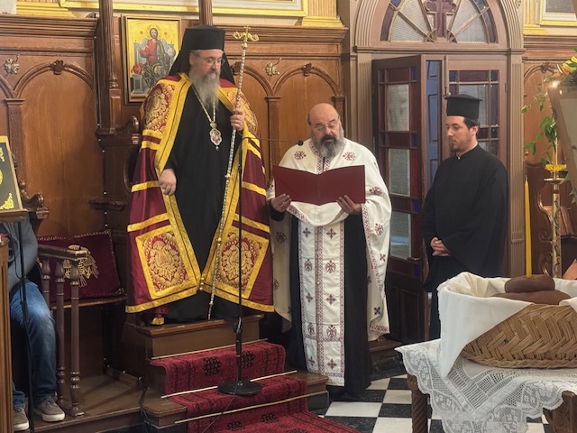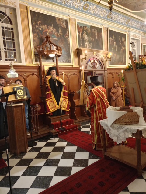 Το απόγευμα της Δευτέρας και ώρα 6.30 μ.μ. εψάλη ο Πανηγυρικός Αρχιερατικός Εσπερινός μετ´αρτοκλασίας, χοροστατούντος του Σεβασμιωτάτου Ποιμενάρχου μας κ. Θεοφίλου με την συμμετοχή πλήθους κληρικών της Ιεράς μας Μητροπόλεως . Τον θείο λόγο κήρυξε ο Ηγούμενος της Ιεράς Μονής Τιμίου Προδρόμου Λιβαδίου Καρυάς, Πανοσιολογιώτατος Αρχιμανδρίτης π. Χριστοφόρος Αραβανής. Το πρωί της Τρίτης εψάλη ο Όρθρος και στη συνέχεια τελέσθηκε η Πανηγυρική Θεία Λειτουργία μετ᾽αρτοκλασίας. Τον θείο λόγο κήρυξε ο εφημέριος Ενοριών Βαθέος και Κατωμερίου Μεγανησίου, Αιδεσιμολογιώτατος Πρεσβύτερος π. Ευάγγελος Αρώνης. Πριν το πέρας της Πανηγυρικής Θείας Λειτουργίας τελέσθηκε Ιερό Μνημόσυνο υπέρ μακαρίας μνήμης και αιωνίου αναπαύσεως των αοιδίμων ευεργετών του Γενικού Φιλοπτώχου Ταμείου. Κατά το διήμερο των λατρευτικών εκδηλώσεων το παρόν έδωσαν μεταξύ άλλων κληρικοί και λαϊκοί συνεργάτες του Γ.Φ.Τ. καθώς και οι εκπρόσωποι του Αστυνομικού και Λιμενικού Σώματος της νήσου.