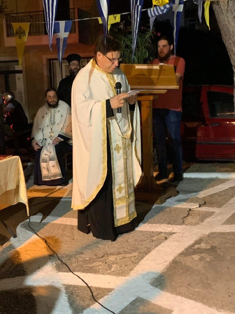 Το απόγευμα της Πέμπτης, 14 Σεπτεμβρίου 2023 και ώρα 8:00 μ.μ., επ’ ευκαιρία της εορτής της μνήμης του Αγίου Βησσαρίωνος, Αρχιεπισκόπου Τρίκκης και Λαρίσης του θαυματουργού, εψάλη στον προαύλιο χώρο του ομώνυμου Ιερού Παρεκκλησίου στη θέση «Αγία Κάρα» πόλεως Λευκάδος Πανηγυρικός Εσπερινός μετ’ αρτοκλασίας, με την συμμετοχή κληρικών των Αρχιερατικών Περιφερειών Λευκάδος και Νυδριού και του ευσεβούς λαού. Τον θείο λόγο κήρυξε ο Αιδεσιμολ. Οικονόμος π. Νεκτάριος Μάλφας, εφημέριος του Ιερού Ενοριακού Ναού Παμμεγίστων Ταξιαρχών Καρυωτών, ο οποίος μεταξύ άλλων αναφέρθηκε στις αρετές και τα χαρίσματα του εορταζομένου Αγίου και στη σημασία του Σταυρού στη ζωή του χριστιανού.