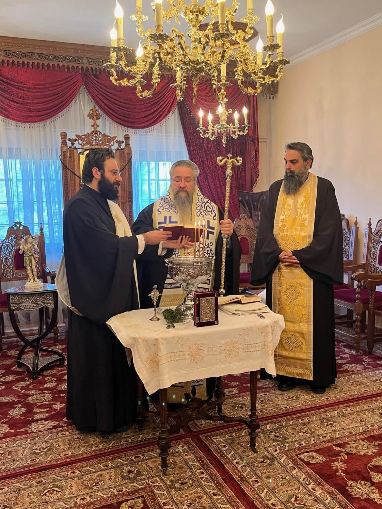 Στην αίθουσα του θρόνου του Επισκοπείου τέλεσε ο Σεβασμιώτατος Ποιμενάρχης μας κ. Θεόφιλος το πρωί της Πέμπτης, 1 Φεβρεουαρίου 2024 τον καθιερωμένο πρωτομηνιάτικο Αγιασμό παρουσία των κληρικών και λαϊκών υπαλλήλων των γραφείων της Ιεράς μας Μητροπόλεως.