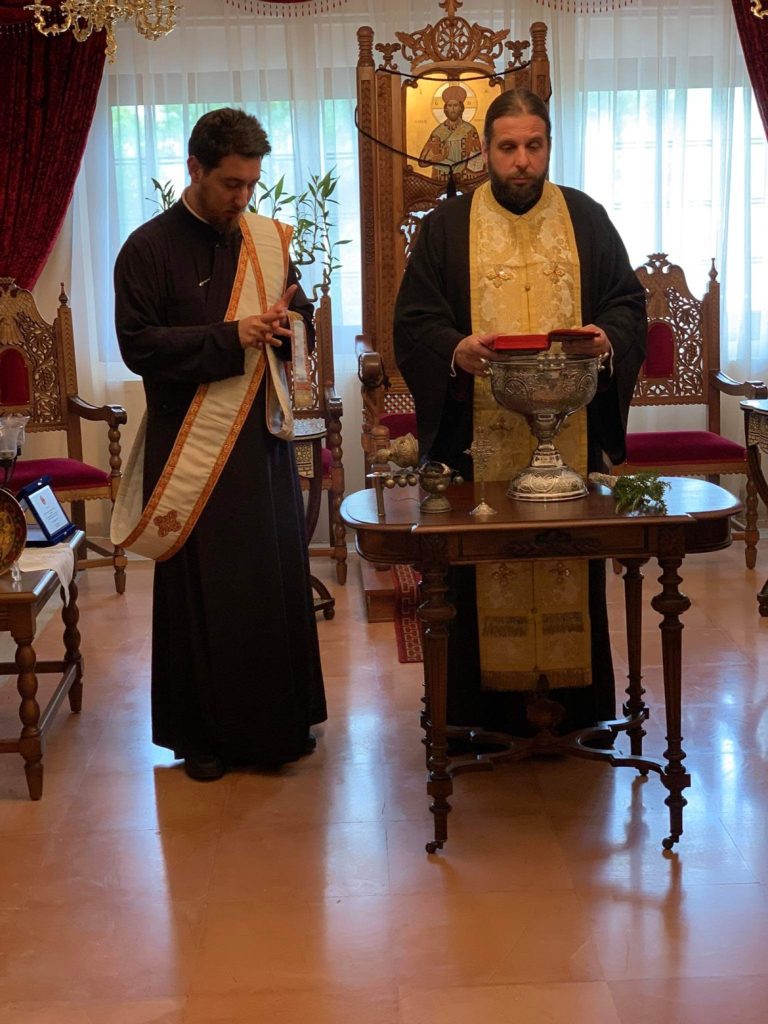 Στην αίθουσα του θρόνου του Επισκοπείου τέλεσε την Ακολουθία του πρωτομηνιάτικου Αγιασμού το πρωί της Παρασκευής, 1 Σεπτεμβρίου 2023 ο Γενικός Αρχιερατικός Επίτροπος της Ιεράς μας Μητροπόλεως Αιδεσιμολογιώτατος Πρωτοπρεσβύτερος π. Αθανάσιος Κοσμάς, εντολή του Σεβασμιωτάτου Ποιμενάρχου μας κ. Θεοφίλου, με την ευκαιρία της ενάρξεως του νέου εκκλησιαστικού έτους παρουσία των κληρικών και λαϊκών υπαλλήλων των γραφείων της Ιεράς μας Μητροπόλεως.