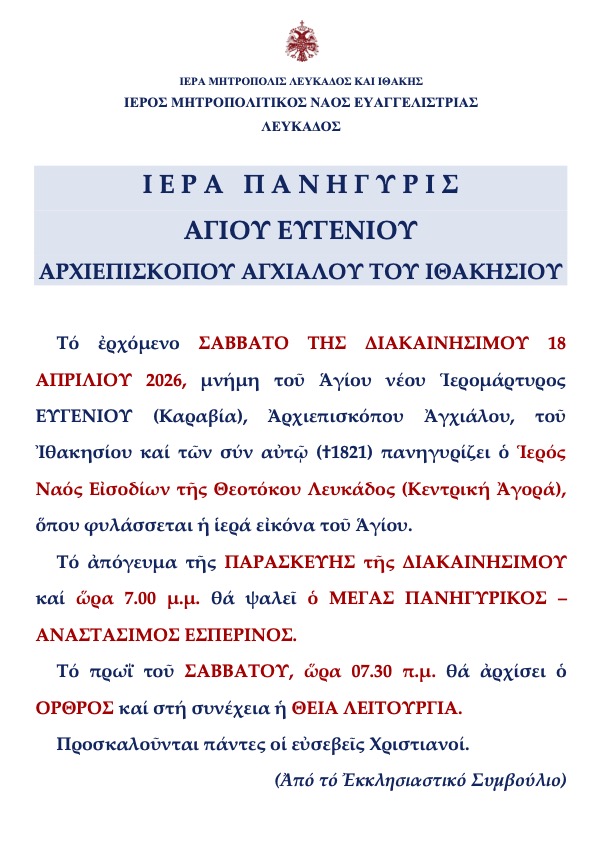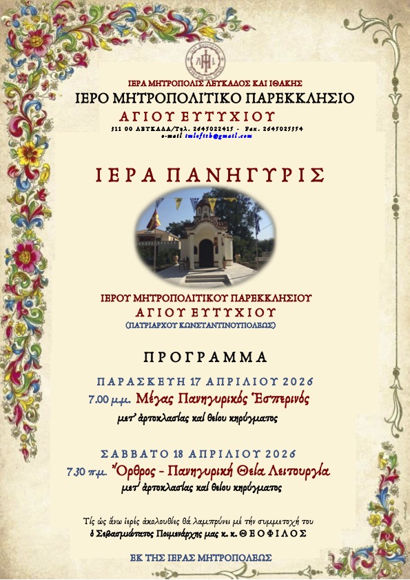 Διεύθυνση: Ιερά Μητρόπολη Λευκάδος και Ιθάκης,
